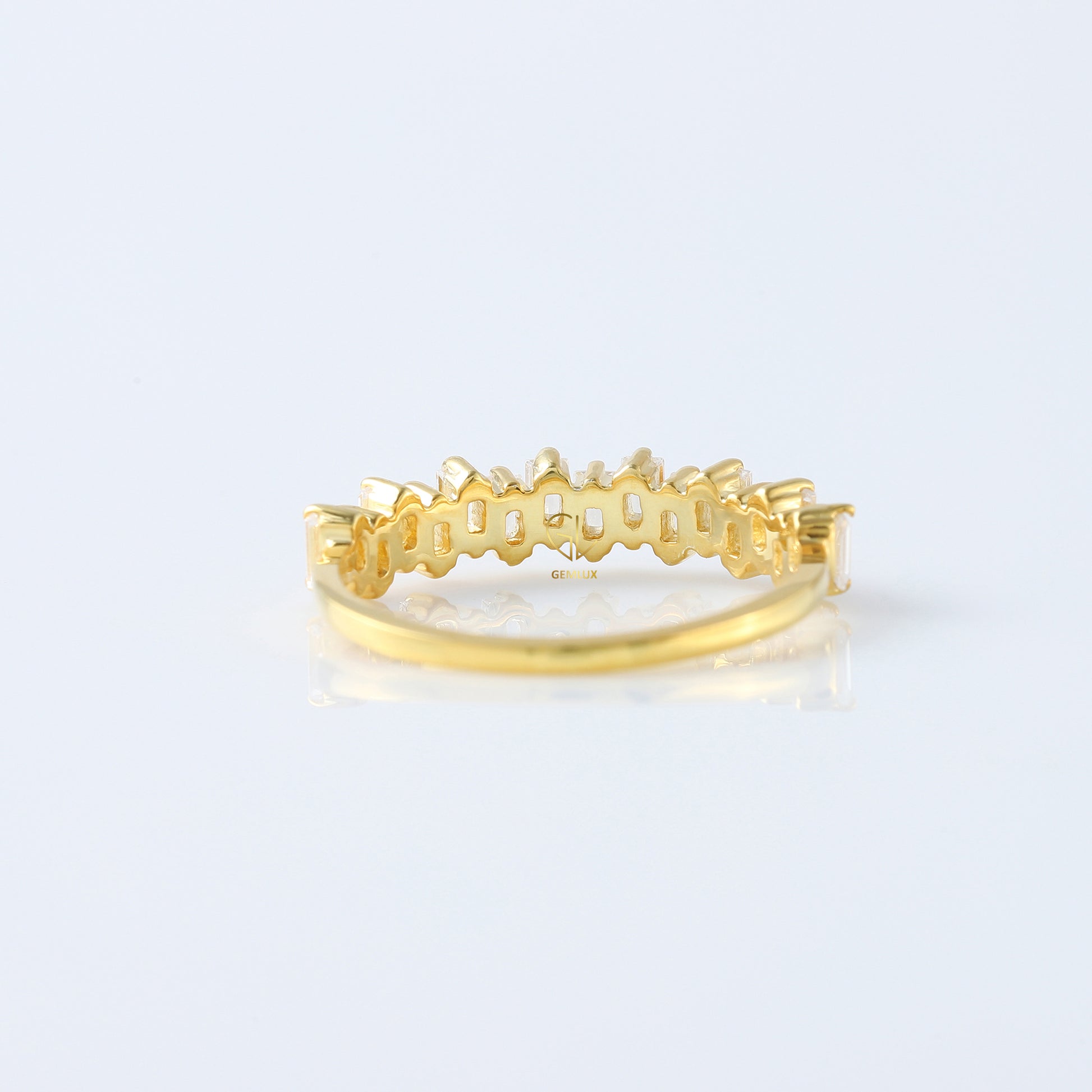 Elegant Baguette Cut Lab Grown Half Eternity Wedding Band, crafted in yellow gold with a stunning zig-zag baguette design. EGL certified and eco-friendly, this stackable ring is perfect for weddings, anniversaries, or everyday luxury. Timeless style meets sustainable sparkle — conflict-free and made to last.